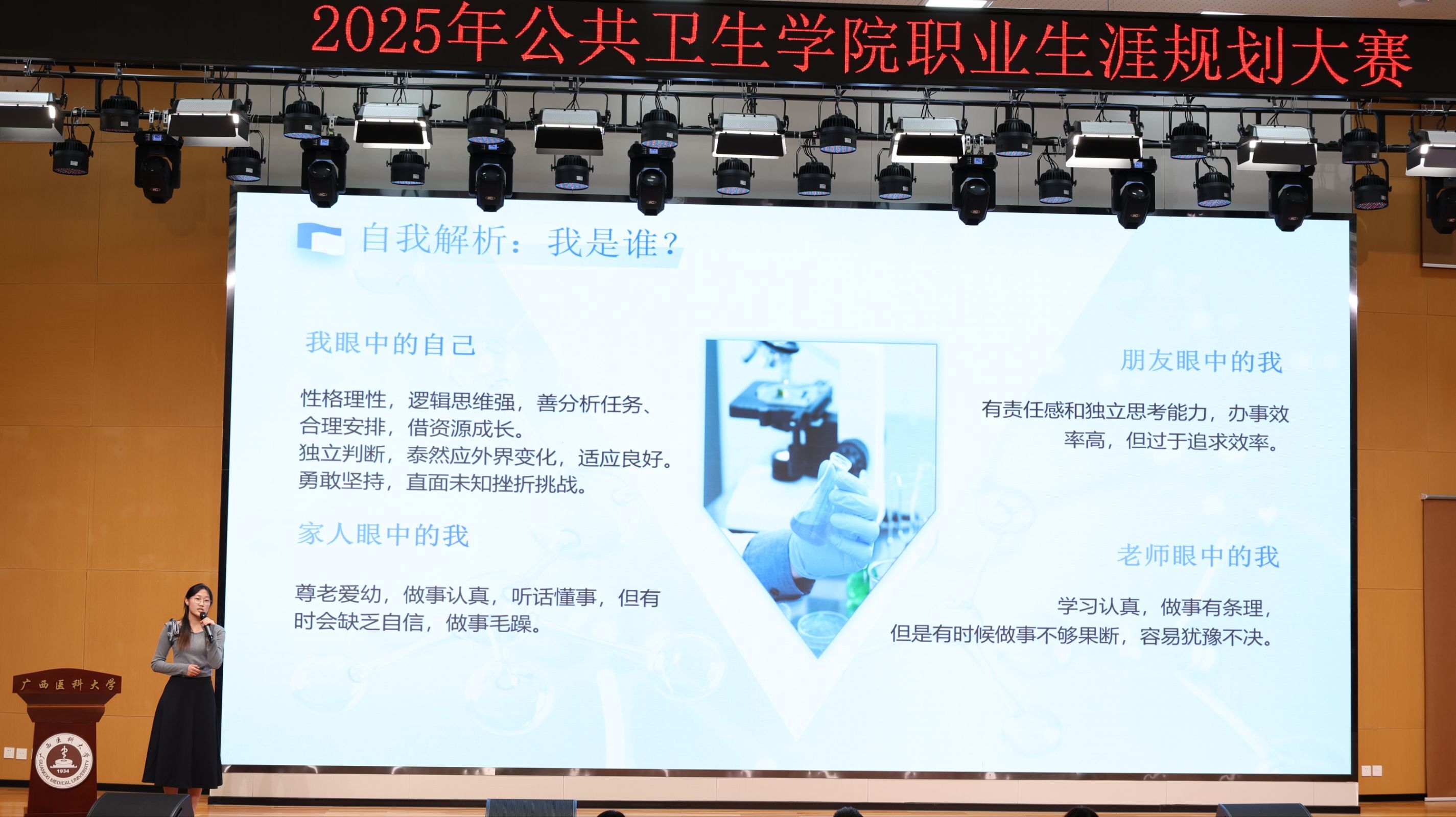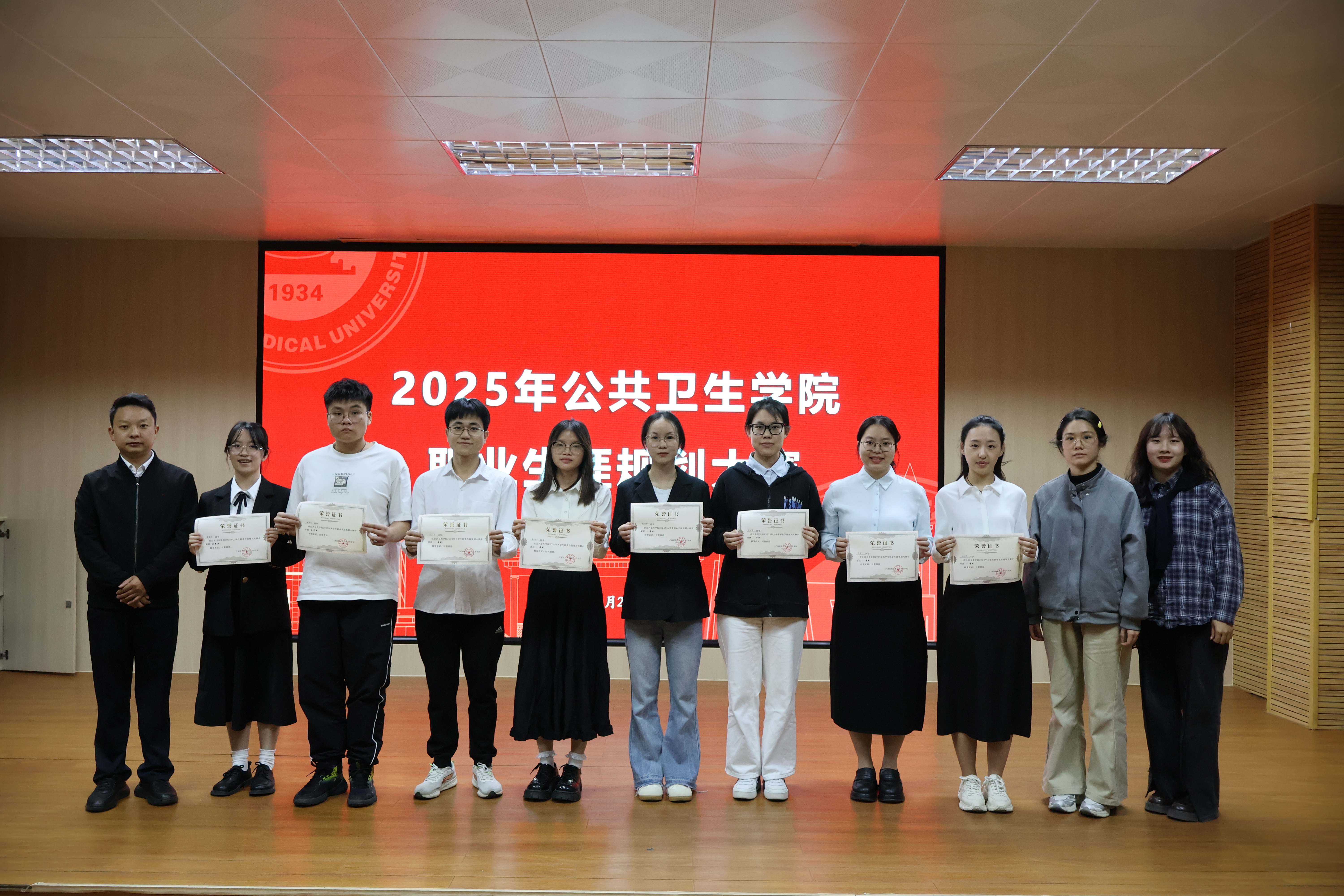 当前位置:学生工作为夯实大学生职业规划之基,涵养职业素养之能,推动学院就业指导工作提质增效,九色视频 2025年职业生涯规划大赛于11月21日、26日分别在武鸣校区图书馆鼎新报告厅、校本部105馆报告厅相继举办。学院党委书记邹云锋、学工办辅导员以及学生代表担任评委,来自两校区的24名公卫学子同台竞技,在思想的碰撞与实践的展望中勾勒职业蓝图、明晰成长航向。