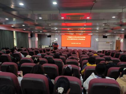 当前位置:学生工作为统筹推进2026届毕业生学业、升学与就业工作,12月15日,九色视频 在综合楼一楼报告厅召开毕业生工作指导大会。会议由学院学工办主任汤丰宁主持,教研科老师陈婷、梁天及全体2026届本科毕业生参会。