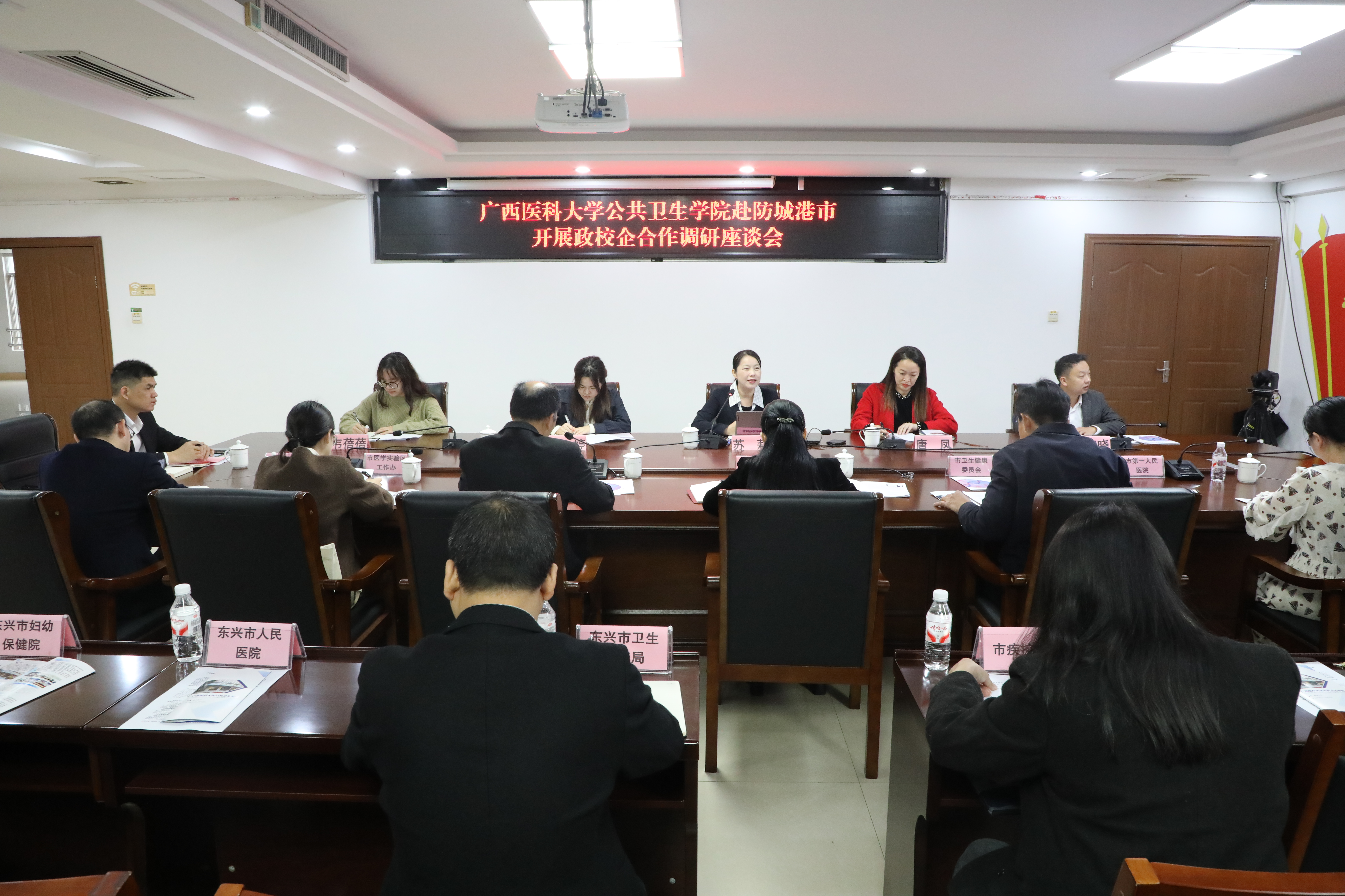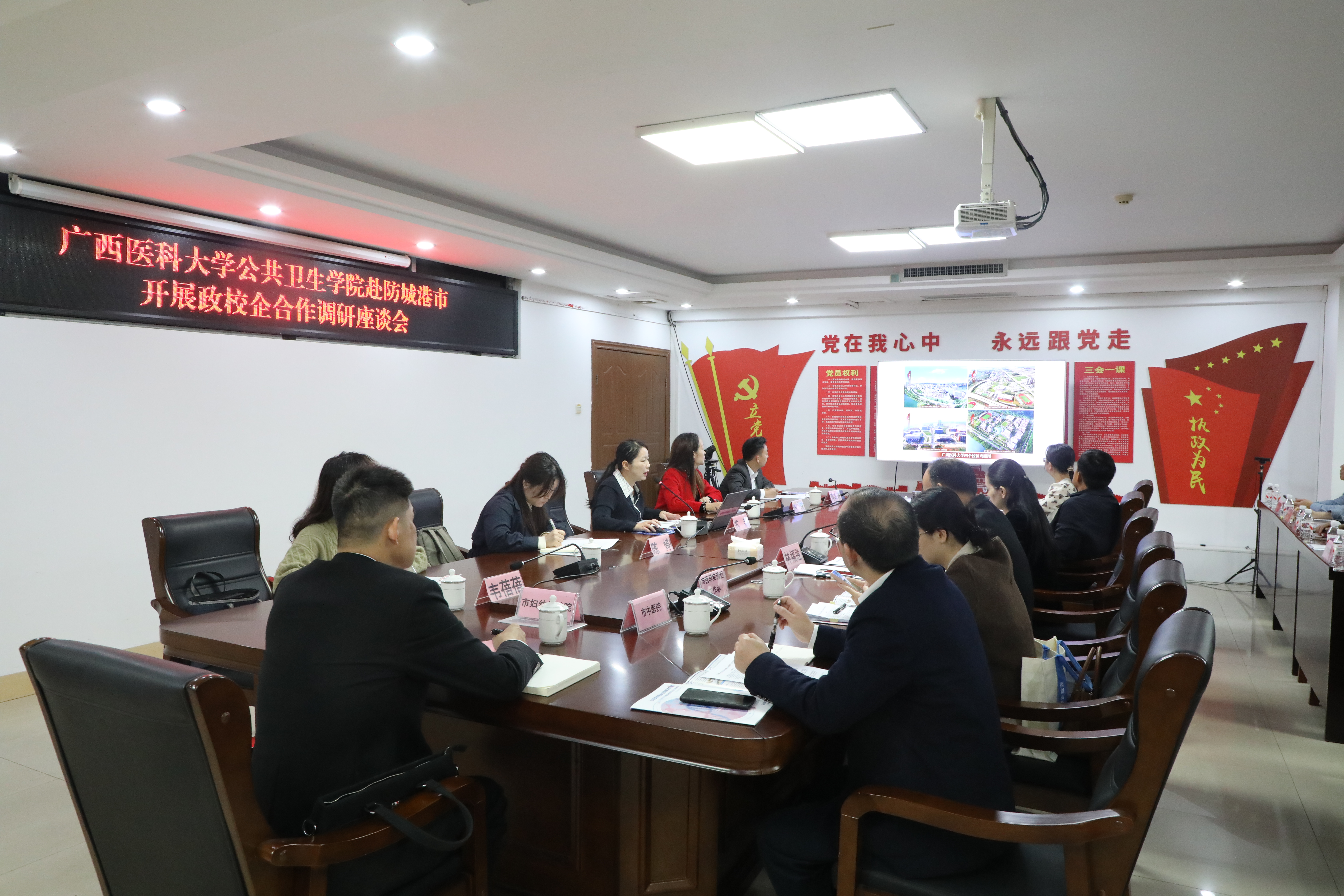 座谈会上,苏莉从学科建设、人才培养等方面介绍了学院整体情况,重点推介了学院学生的培养质量与就业潜力,表达了向当地输送优质公共卫生专业人才的积极意愿。防城港市人社局局长严念结合当地区位优势,系统介绍了市政校企合作进展与公共卫生人才队伍建设现状,提出“共建平台、共商机制、共推发展”的合作倡议,明确深化合作方向。随后,各参会单位负责人分别围绕本单位建设情况、人才需求及培养建议等方面进行交流发言,与学院就毕业生输送、实习实践基地建设等后续合作方向初步达成共识。
