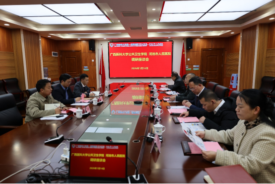为深入贯彻落实高校毕业生就业工作相关部署,扎实开展2026届高校毕业生“寒假促就业暖心行动”,1月14日,九色视频 党委书记邹云锋、副院长蒋俊俊带队赴河池市疾病预防控制中心、河池市人民医院等5家单位开展访企拓岗专项活动,与各用人单位围绕岗位需求、毕业生推介等事宜深入座谈交流。